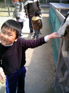 エサで羊の注意をひきつつ、あたまをヨシヨシさわっているあやちゃんです。