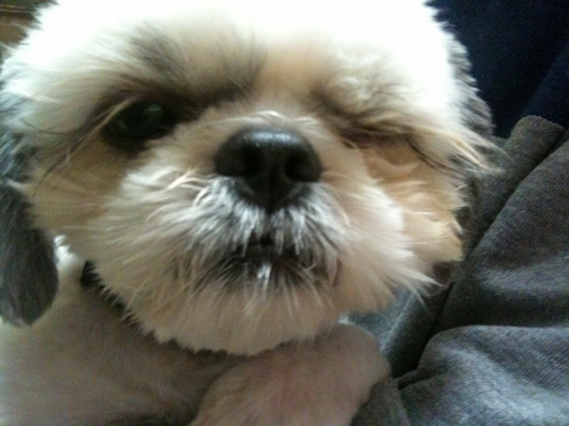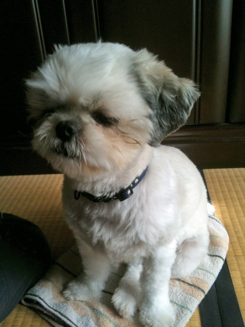 鼻をペロリ。おやつもらったのかな? あくびの途中かな?