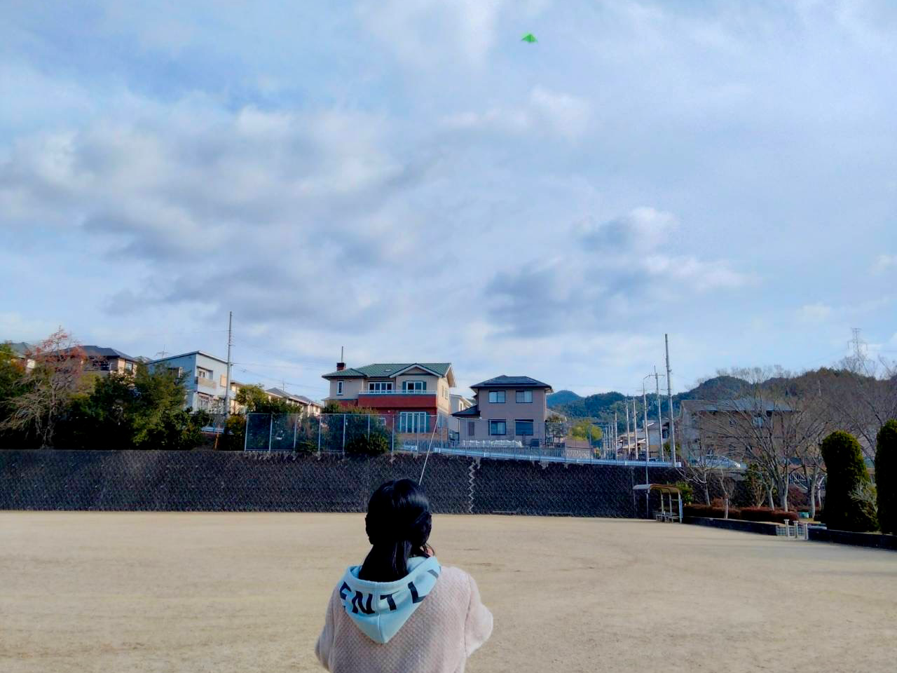 「はっちゃんと一緒に凧あげしたいなあ」と言ったら、あやちゃんがあげてくれました。