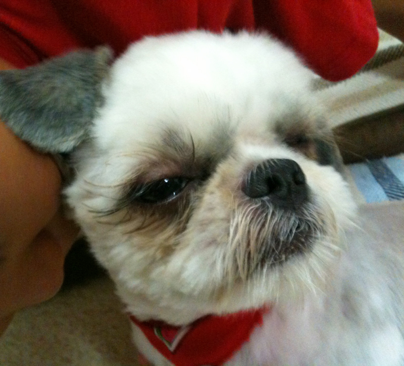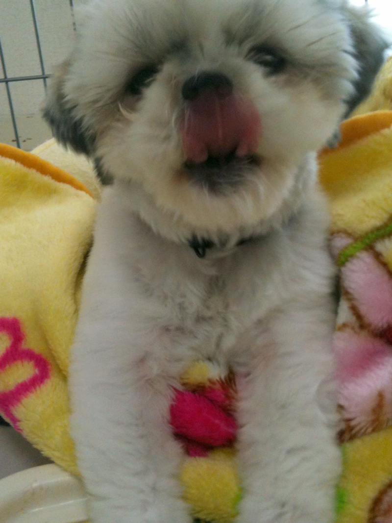 鼻をペロリ。おやつもらったのかな? あくびの途中かな?